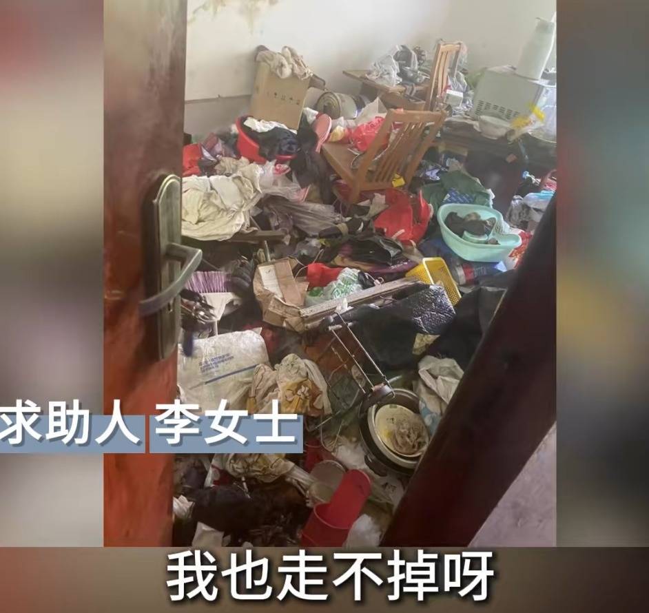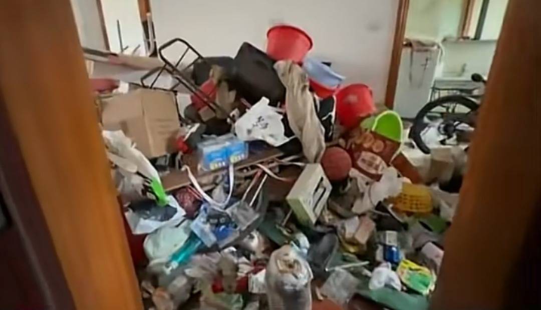 记者到达小区时看到,该男子正在从房间里清理垃圾,清理出的杂物堆满了楼道。记者通过房门看到,房间里也堆满了杂物,已然无法正常居住。