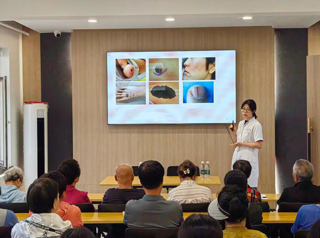 针对居民关心的皮肤问题、呼吸道不适等问题,志愿者结合实例给出解决方案。互动环节,居民们踊跃提问,“秋分后如何调理肠胃?”“老人晨练适合什么时间?”志愿者一一耐心解答,现场氛围热烈。